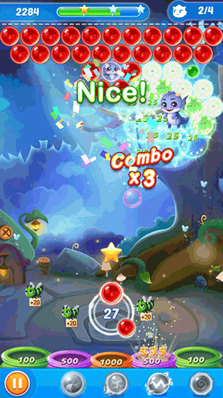 清空后泡泡会下坠至底部分值框,累计奖励。