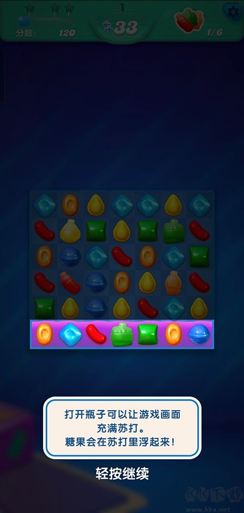 4、每打开一次瓶子,可以让画面充满苏打,糖果会在苏打里面浮起来。