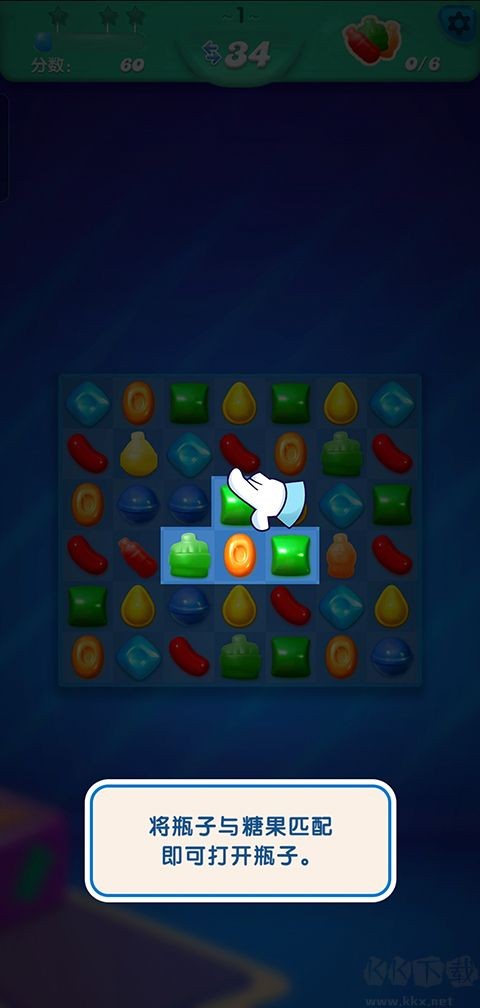 3、糖果与组合效果:组合糖果可以触发强大效果,比如糖果小鱼、着色糖果等,让游戏更具策略性。