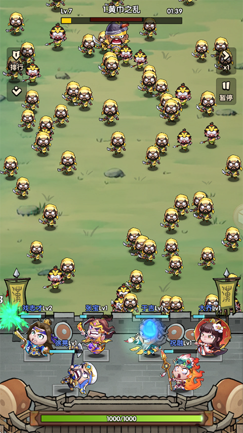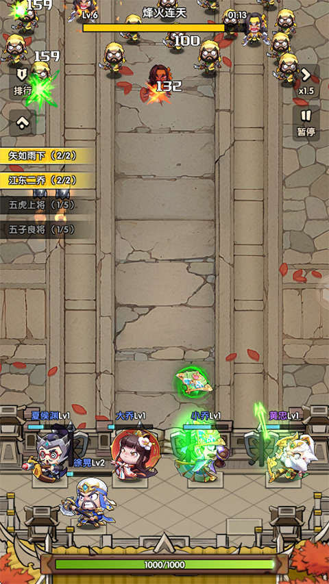 3、每场战斗的胜利方法都不一样。透过击杀敌人、收集金币并升级武将,逐步提升阵容。每个关卡都有不同的BOSS和敌人,挑战不断。