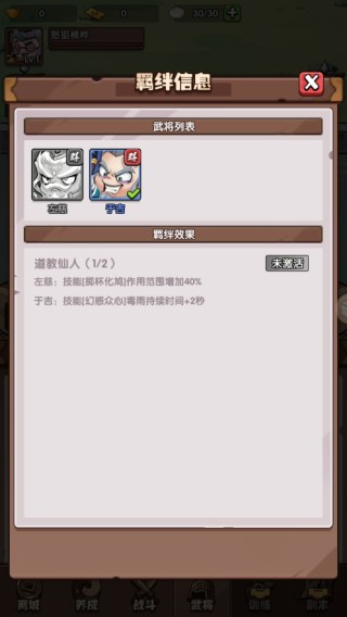 可以选择两名武将上阵到辅阵中,战斗过程中不会随机到辅阵武将,辅阵武将也不会出场战斗,辅阵武将在整个战斗过程中都可以与上场的武将形成羁绊效果。