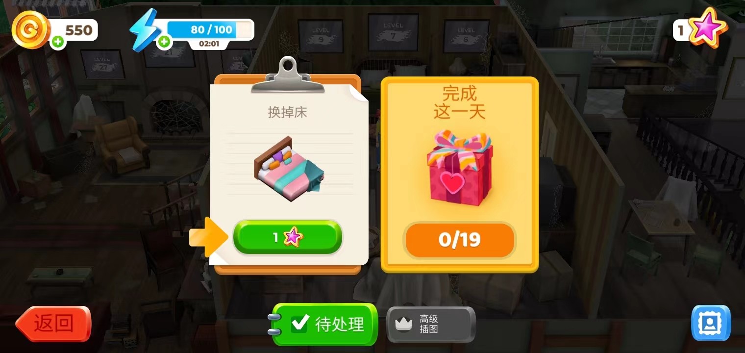 10、第一个任务就是把床换掉,玩家可以选择自己喜欢的床,不过做任务是需要星星的。
