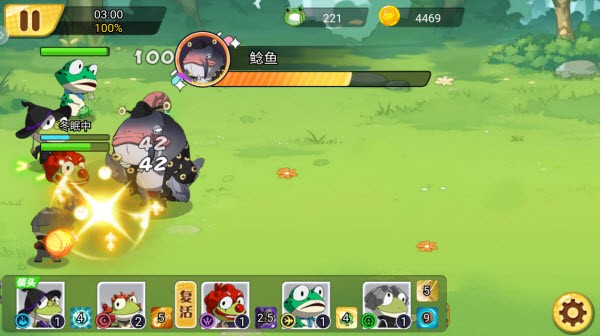 4、战局紧张时可召唤其他青蛙加入战线,扩大防御阵容。