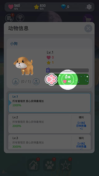 使用爱心道具招募第一位庭院动物成员,开启羁绊养成。