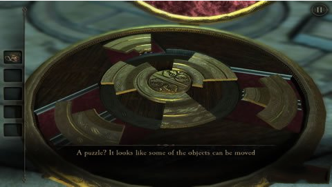 1、灰暗空间中,一张奇异木桌拉开谜题序幕,靠近观察可见更多细节。