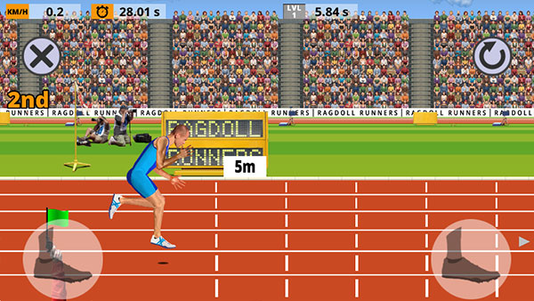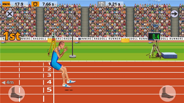 按压双键控制运动员双腿交替移动,需配合节奏把握冲刺时机。