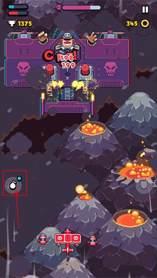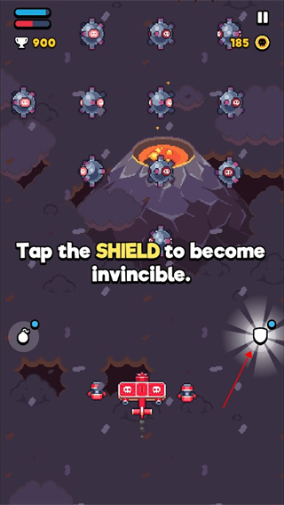 遇到密集炸弹时,点右侧盾牌可短暂抵御伤害。