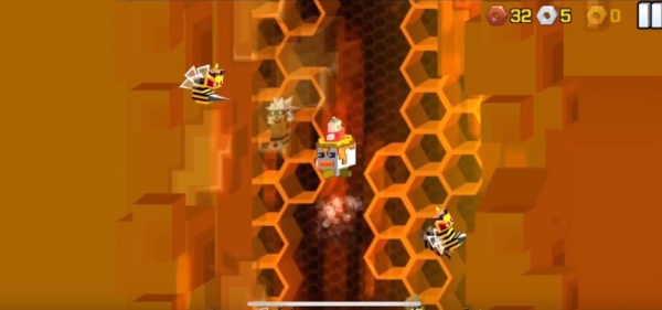 采用类似飞鸟跳跃玩法,后期敌人会射出弹幕阻挡进程把握节奏及时躲避反击得分。