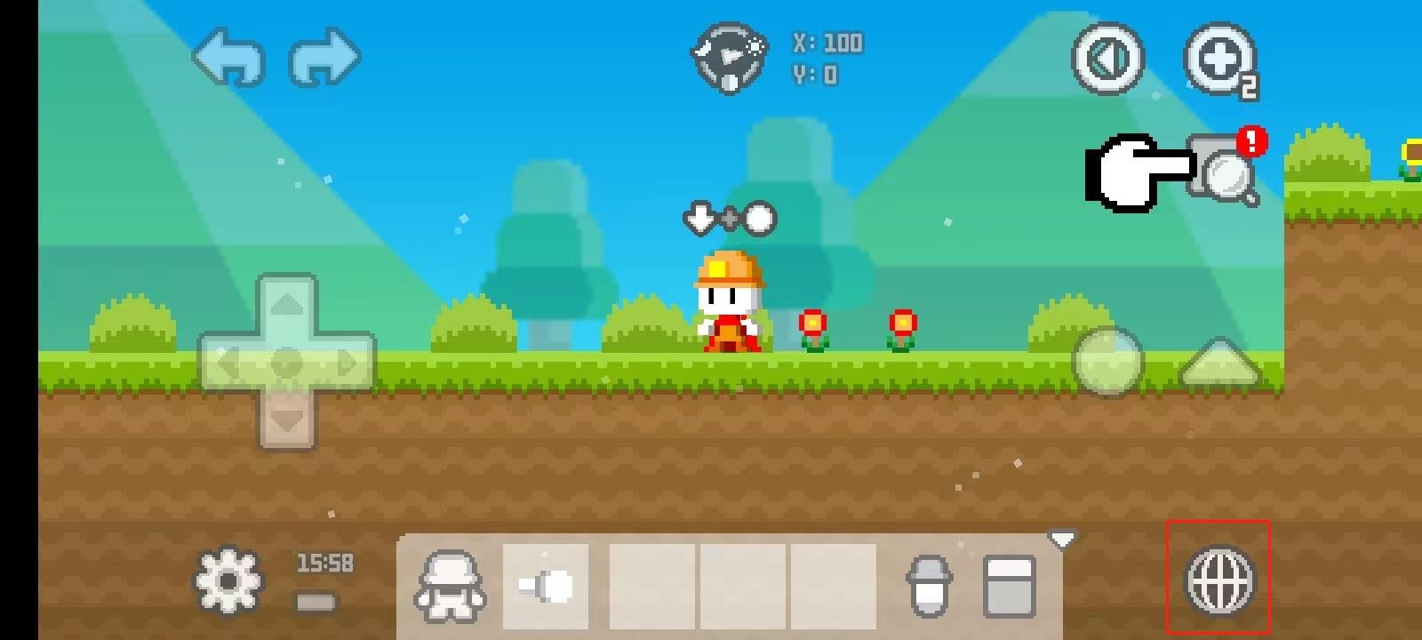 9、然后回到游戏,左边的按钮控制角色的移动;