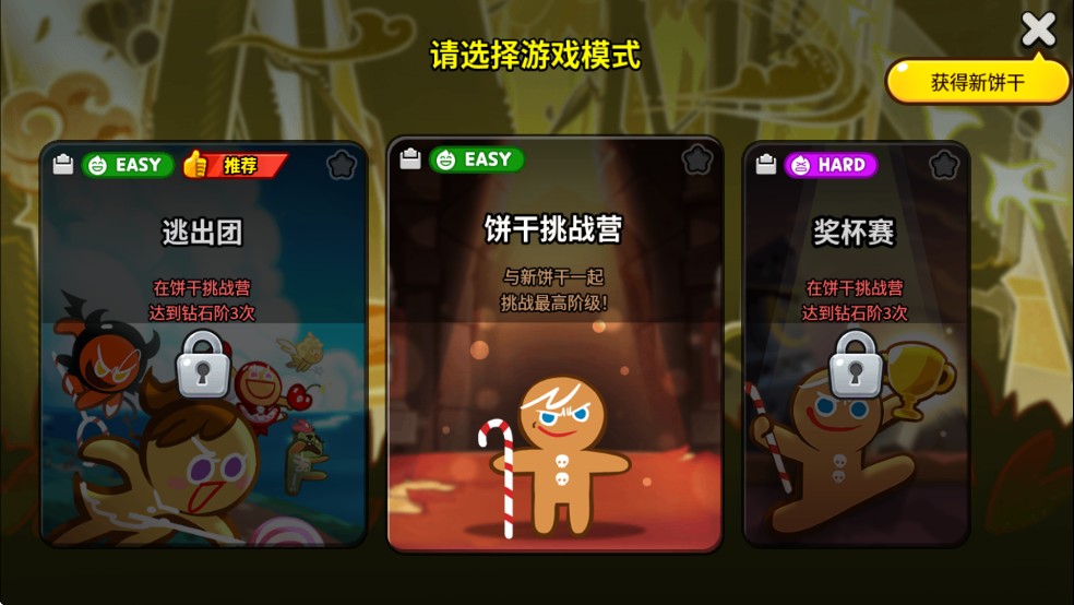 2、多种游戏模式,新手只能先从【饼干挑战营】模式开始游玩