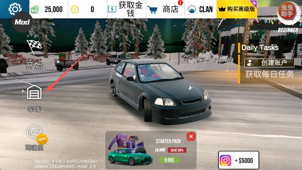 1、打开车库;