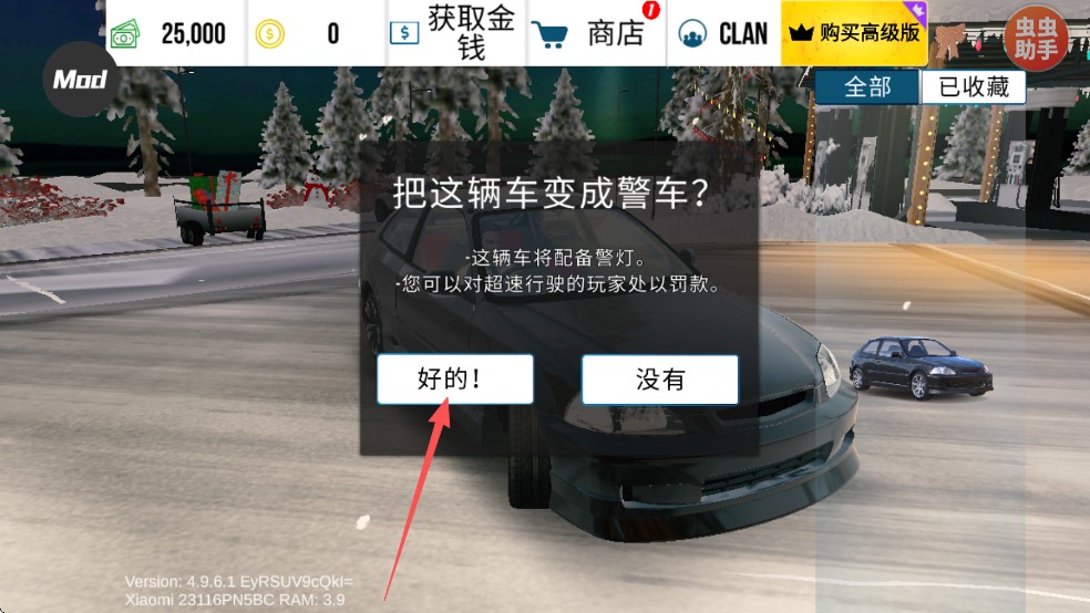 3、点击确认即可将自己的车子改装成警车。
