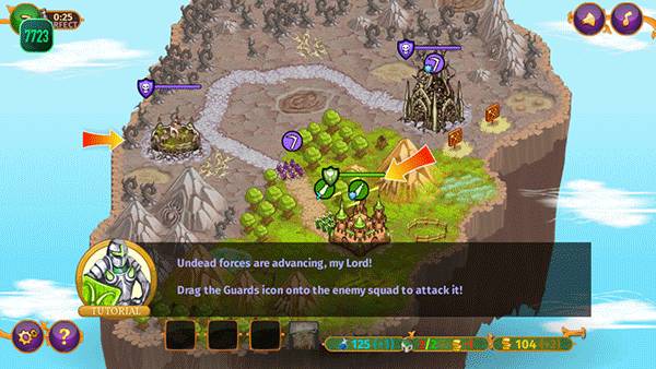 5、拖动士兵头上的攻击图标可以控制它们的行动;