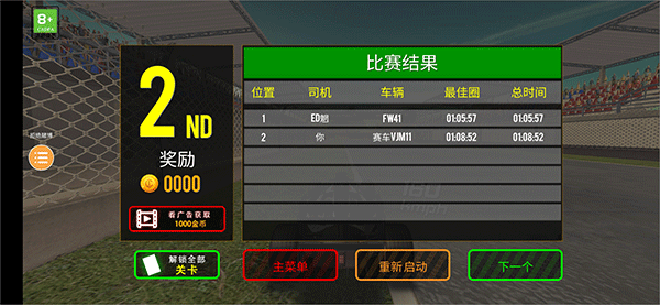 5、在游戏途中玩家要操控赛车通过每个检查点,并完成圈数任务