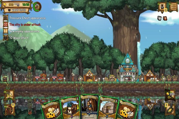 4、兵种分布,建议兵种分布在最靠城池的两侧围墙,一是支援能快,而是兵的损耗量少,在外侧围墙那里放置箭塔,麻雀,火药桶等,一般度过前20关没问题。
