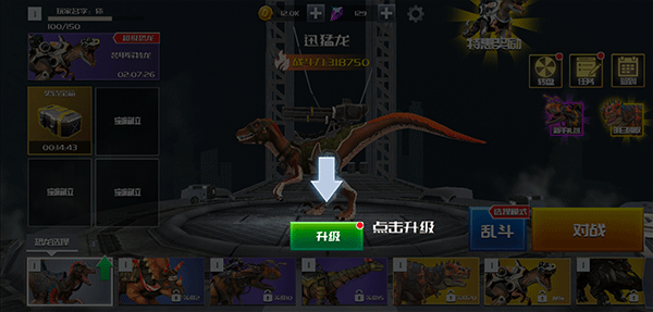 8、另外,玩家还可以在首页恐龙选择中任意选择你要出战的恐龙,也可以将喜欢的恐龙进行升级,升级后的恐龙战斗力会更强哦