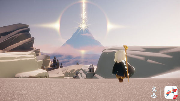 在云野的出发点放眼望去,是一片白色的云海,而在云海的深处,坐落着一座宫殿。在去的途中会遇到一个像金字塔一样的建筑,一定要过去,过去之后在这个建筑的下方有着一个像蘑菇一样的东西,使用蜡烛把这个给烧了,能够获得蜡烛能量并开启这个建筑,召唤白鸟过来。