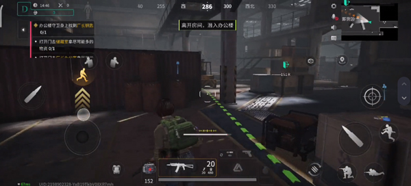 4、进入游戏如图,游戏采用横屏操作,左边控制移动、右边则为射击、跳跃、蹲下等键位;