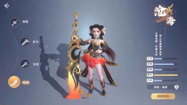 2、玩家在创建角色时可以选择不同的职业,如神策、梦花、龙渊、沧海等,每个职业都有其独特的战斗风格和属性。