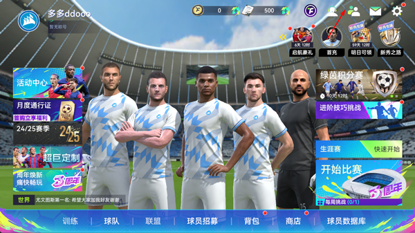 1、打开最佳球会手游,进入游戏后点击右上方好友图标;