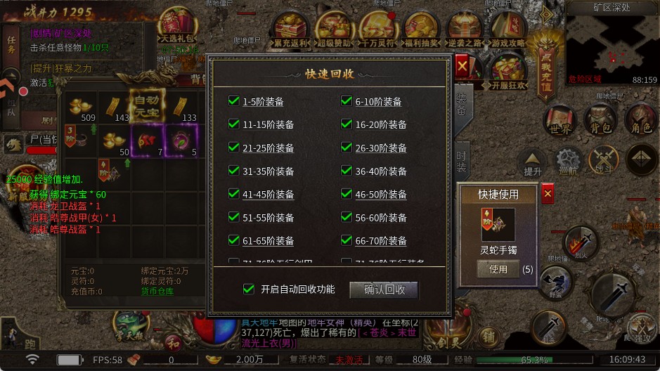 1、上线送自动回收+满攻速,零氪也能逆袭当大哥!