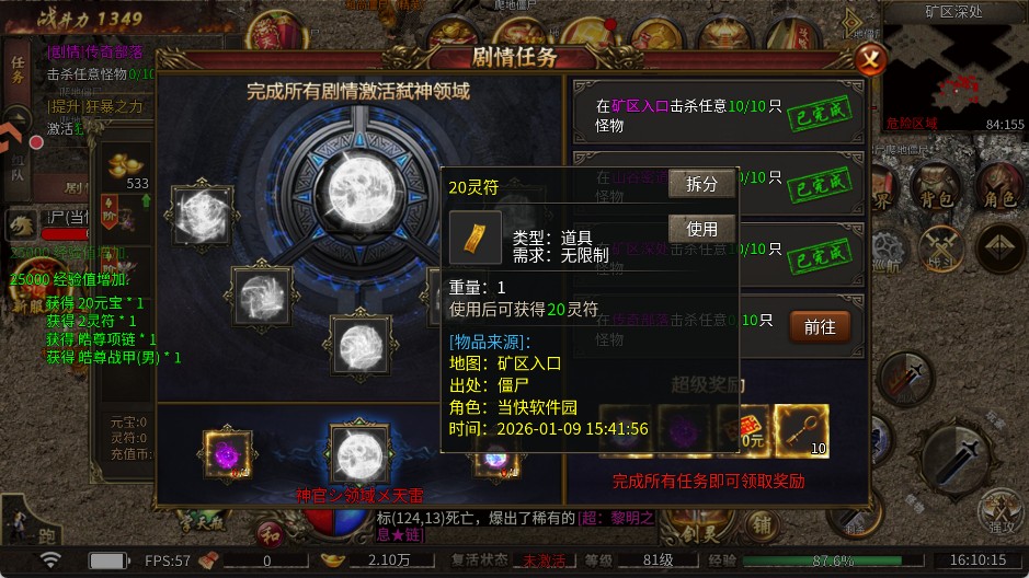 2、打怪爆灵符、充值卡、红包,挂机一夜暴富不是梦!