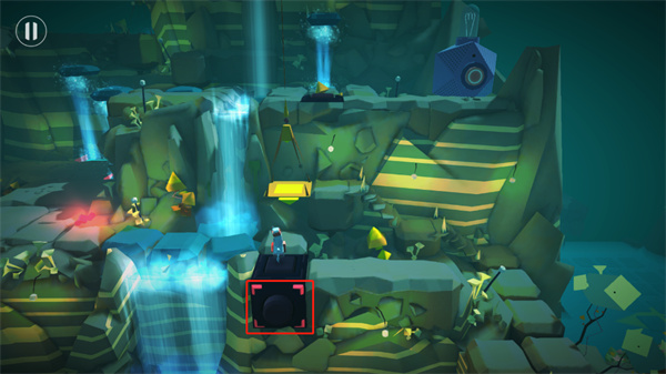 2、玩家在游戏里会发现有蓝色的方块出现,这些方块点击就可以上升和下降的。玩家在这一关里面就是利用这个来进行场景的完成的,像下图这样移动到红色的按钮那边去。