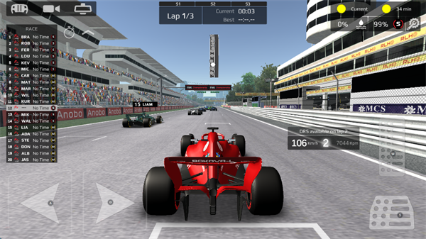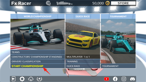 1、进入真实方程式赛车模拟安卓版,选择世界锦标赛,快速比赛以及锦标赛等模式,新手建议选择第一个模式,点击“START CHAMPIOINSHIP”。