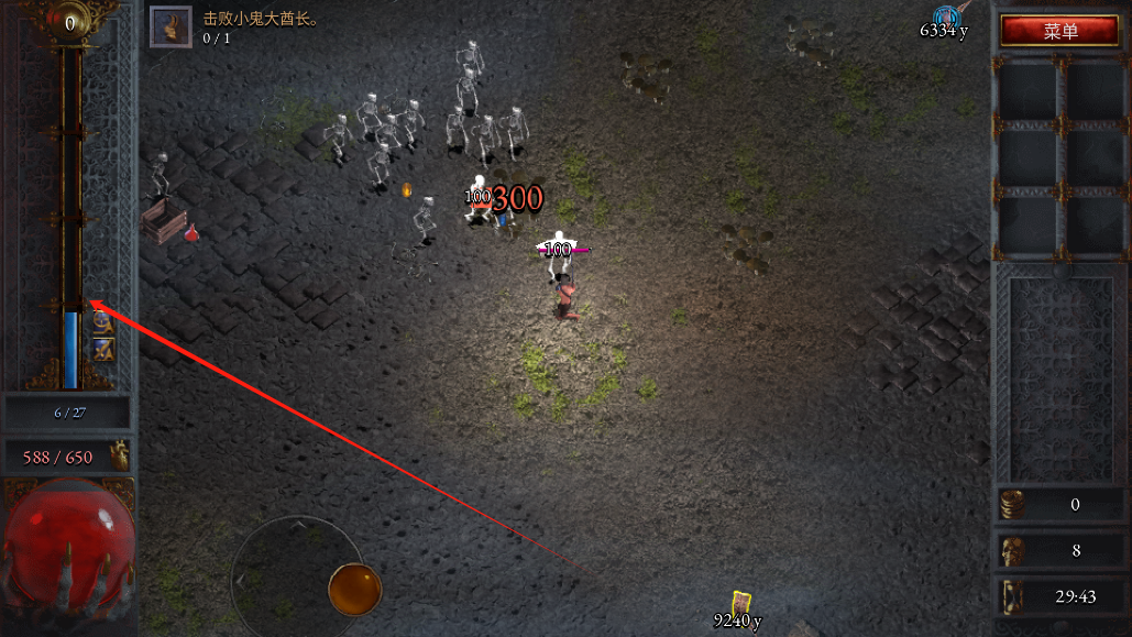 4、属性加强的差不多了,就可以开始闯关了,消灭这些骷髅怪;