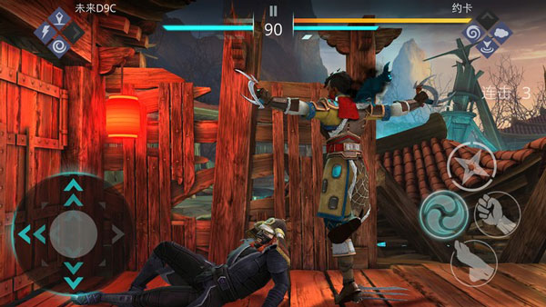4、进入游戏如图,玩家需同敌方人物进行战斗,左边控制方向,右边则为攻击、跳跃、下蹲等键位。