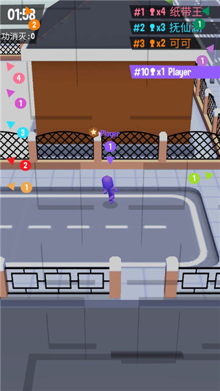 拥挤城市小游戏里的玩法是以吞噬白色的小人,在搭配简答的操作就能够享受在其中。非常的需要玩家利用速度和技巧来战胜城市中的敌对军团,简单的规则和竞技模式却有着十分耐玩的玩法。在前期慢慢的积累,中期就开始去吞噬,成就强大自己。拥挤城市小游戏下载安装后如果碰到其余颜色额小人的话,人群量比对方多的话就可以吞噬掉。