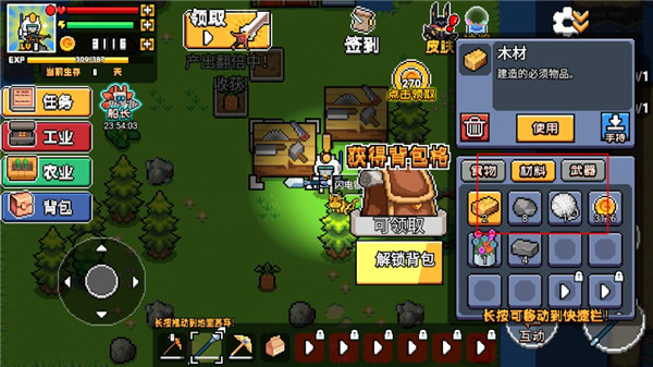 3、通过获取素材与自然物资打造临时的居住所、生活道具与防御装备,享受高度自由建造系统。