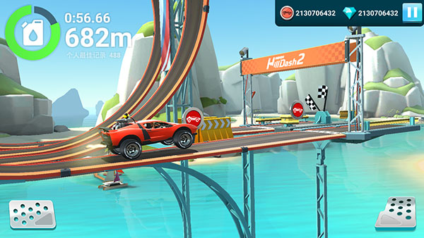 2、点击油门即可开始比赛,当玩家经过存盘点时即可保存游戏进度。