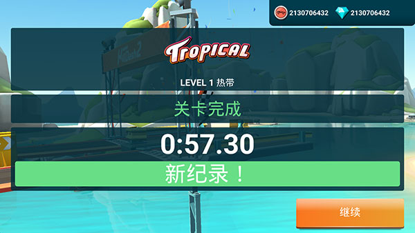 5、玩家顺利过关后会显示关卡总用时,点击继续即可进行下一步。