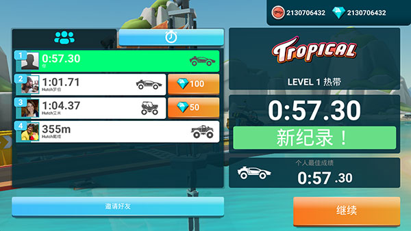 6、在结算界面还会显示其他AI对手的成绩,再次点击继续即可开始下一局比赛。