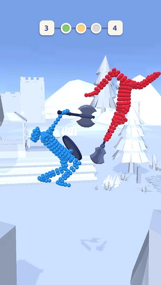 点击进攻后,小人就会用玩家摆好的姿势和武器和对手决斗,武器先碰到对方的人就赢啦。