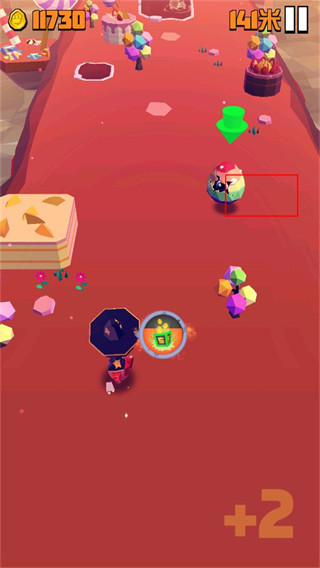 3、在跑酷的过程中,玩家要躲过眼前的各种障碍,路途中还有糖果和金币、恐龙蛋等物品,需要玩家去拾起。
