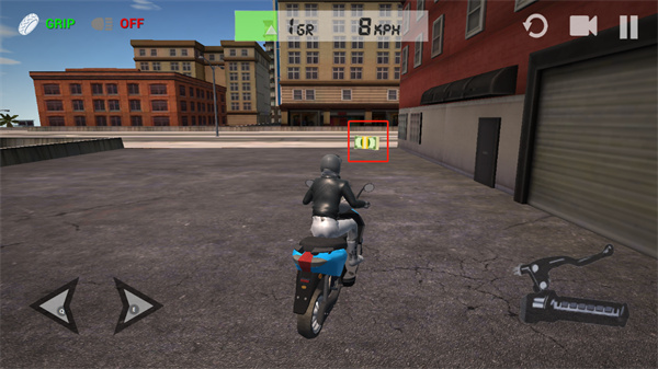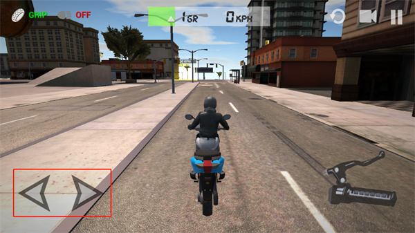 5、点击上方的刹车按钮可以对摩托进行刹车,长按按住刹车按钮即可倒车。
