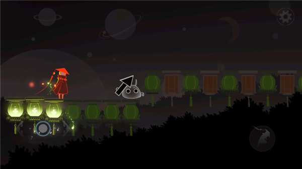 5、点击右侧按键以进行跳跃,而玩家需点亮所有灯笼并到达终点才能完成关卡。