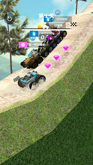 5、每通过一个关卡都会获得一定的奖励和资源,玩家可以用来解锁更多帅气的越野车和其配件。