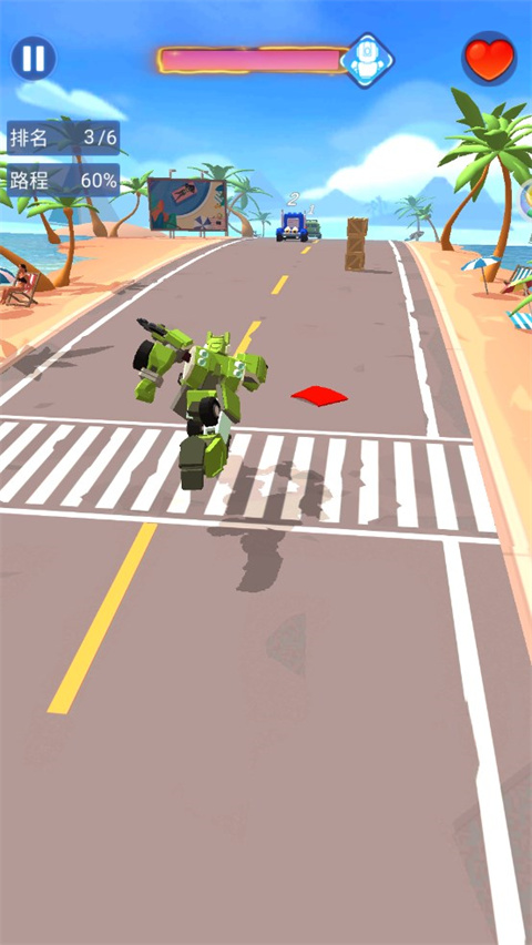 1、下载进入汽车人变形热血赛车游戏,透过滑动屏幕来控制汽车人移动
