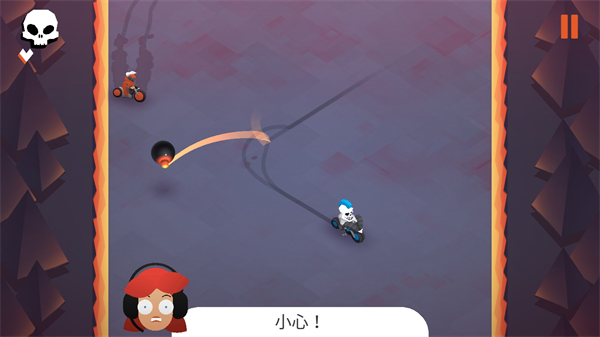 3、撞击沿路的白骨可以得分,还得时刻变换方向,避免撞上陷阱。