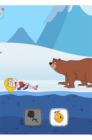 第2场景:小姐姐遇到一头灰熊,选择玫瑰花,然后小姐姐倒下装死骗过灰熊。