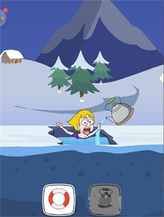 第2场景:小姐姐掉进了一个冰窟窿,选择热水壶,往里面倒热水,然后小姐姐洗个热水澡出来。