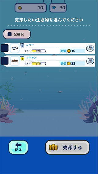 1、升级钓竿和渔船,卖鱼赚金币,打造更酷的装备,让钓鱼更轻松。