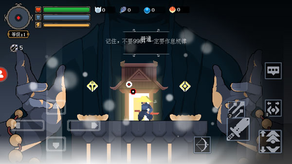 3、点击位于画面左下角的方向键可控制角色移动,右下角则为攻击键和跳跃键。