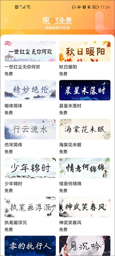 5、这里会有一些免费的字体供用户选择;