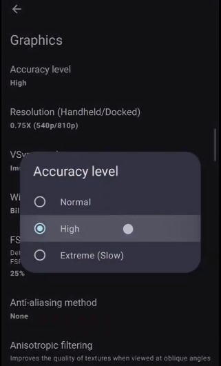 2、将部分游戏设为高精模式,能有效修复图像异常和崩溃问题。