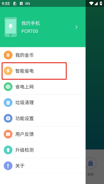 4、功能侧栏就可以轻轻松松的去开启省电服务。