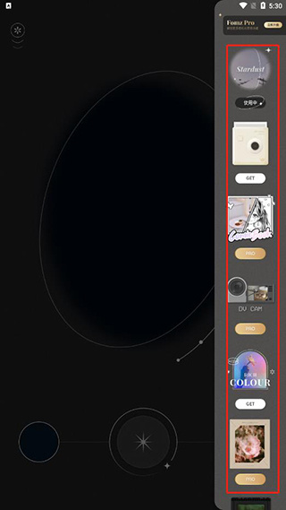 2、用户点击右下角星星和月亮可以切换滤镜。
